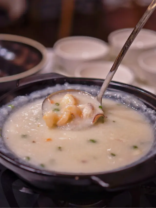 艇王海鮮粥 ($616/7位): 呢個粥係成餐飯嘅完美收尾!侍應會將一大鍋粥料推到你面前,即席開火再煮,保證你食到嘅每一啖都係熱辣辣、最鮮味嘅狀態!粥底煲到開花,非常綿滑,而且用料十足,清楚見到有鮮蝦、帶子、魚片等海鮮,鮮甜味完全融入粥底,喺食完一輪熱氣嘢之後,食返碗暖笠笠嘅粥,成個胃即刻舒服晒。