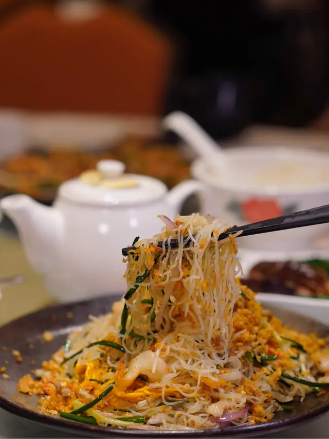避風塘炒米粉 ($128): 估唔到連炒米粉都可以用避風塘方式演繹!呢碟米粉炒得極度乾身,條條分明,完全唔油膩,鑊氣十足。香脆嘅炸蒜同辣椒碎同米粉非常夾,惹味得嚟又唔會蓋過米粉本身嘅米香,食到停唔到口!