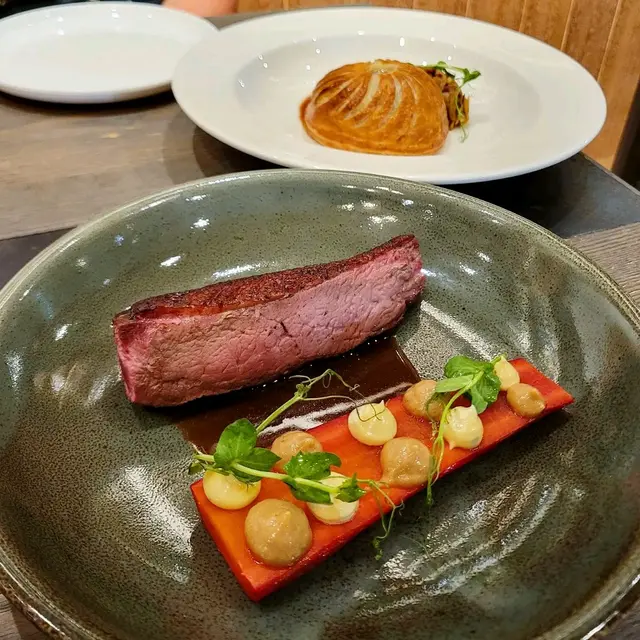 。🦆 Grilled Duck Breast ($308) - 煎鴨胸非常失望,首先係煎得過熟,二是肉質不太新鮮,有點瘀色,食落肉質有點霉又無鴨肉味,反而舊伴碟紅蘿蔔好好食,好香甜,作為一間法國餐廳煎鴨胸竟然咁嘅質素真係幾失望。