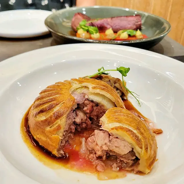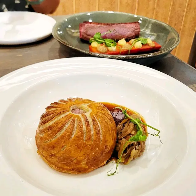 。🕊 Pithiviers of Pigeon and Foie Gras ($428) - 店內signature焗酥皮鴿肉及鵝肝。酥皮外形非常完整,焗得香脆,香甜的椰菜包住鴿肉,把肉汁鎖住,又唔會整淋個酥皮。鴿肉juicy,鵝肝嫩滑,不愧是他們的signature。