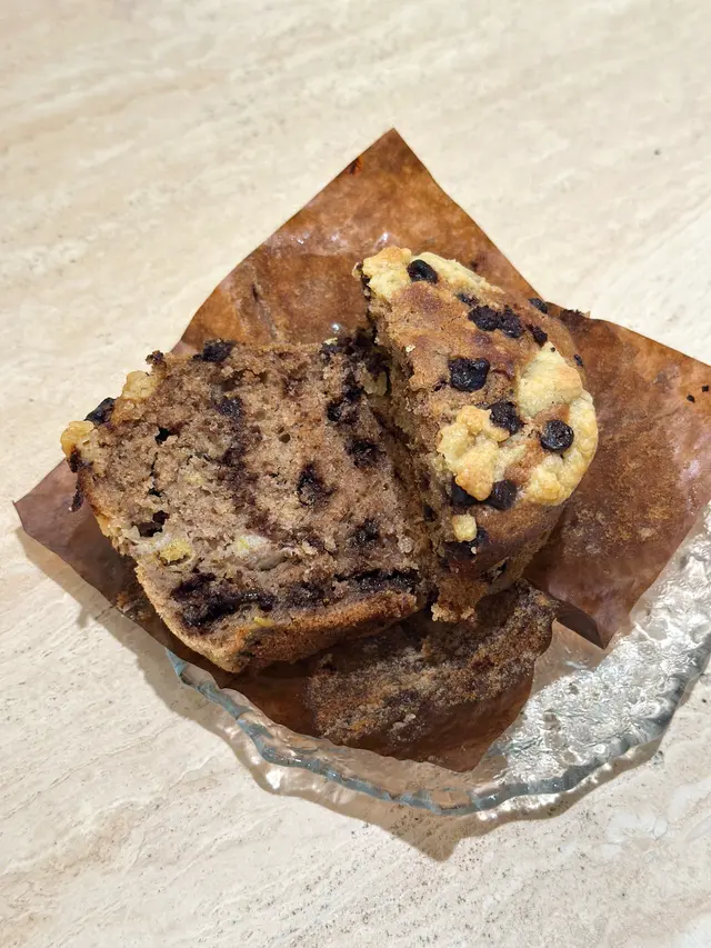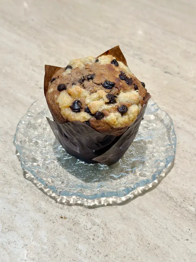 手工朱古力香蕉酸種乳酪瑪芬鬆餅 : 鬆餅用上酸種乳酪發酵,帶有獨特的微酸風味,配上手工朱古力香蕉,口感綿密美味
