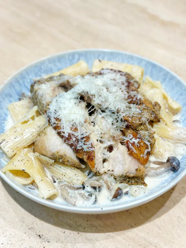 香濃奶油芝士雞排意粉 : 用上粗管粉可以蘸滿味道濃郁嘅奶油芝士汁,再配埋香草味嫩滑嘅雞扒,非常美味嘅主食