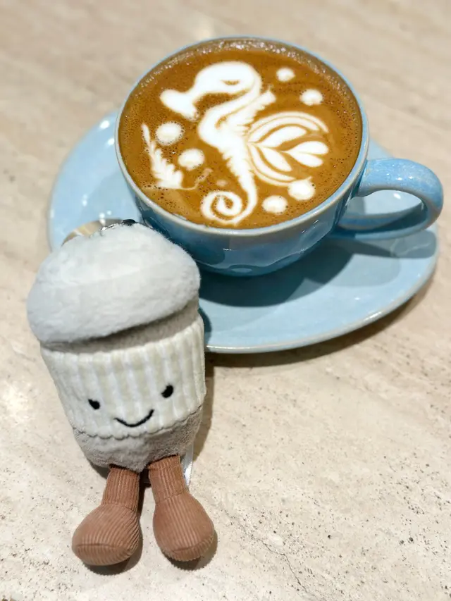 鮮奶咖啡 : 咖啡拉花賣相精緻,一隻海馬嘅拉花,奶味道較重,可以慢活一下