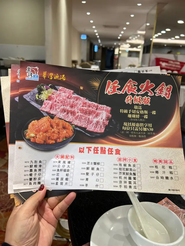 今晚同朋友去咗位於柴灣的翠灣漁港,試吓呢度推出嘅火鍋任飲任食放題。酒樓有寬敞明亮的環境,而且店員服務都非常爽手。