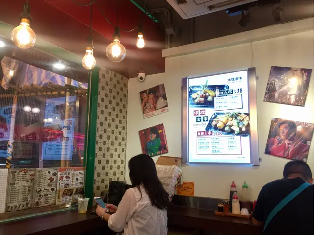 店面佈置充滿港式風味 - 懷舊的霓虹燈招牌、綠白色、黑膠唱片、黑膠唱碟機, 仲會播80' 金曲