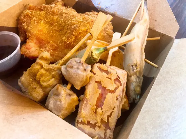 炸串和牛粒、炸串黑豚五花腩、炸串多春魚、炸串墨魚汁香腸 & 炸串南瓜