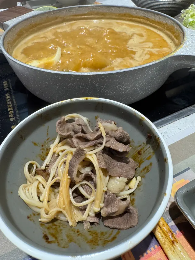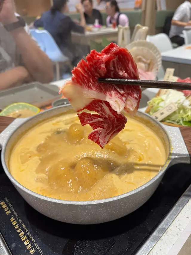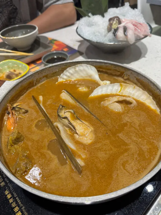 湯底精選咗沙嗲金菇牛面肉,港式情懷。湯頭濃郁惹味,帶微辣香氣。當食材落鍋翻滾,香氣即時瀰漫全場。