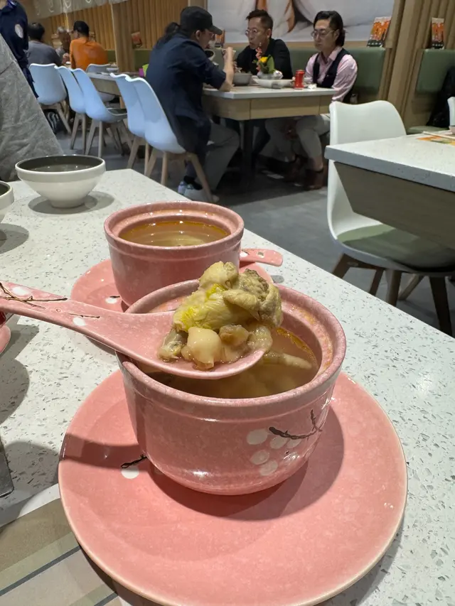 需早一天訂座及確認選餐,特色之一是餐廳會用當季最新鮮食材熬製,保證足料,夠火喉,色澤金黃透亮,湯頭散發濃郁雞香,入口鮮甜,味道醇厚養生。