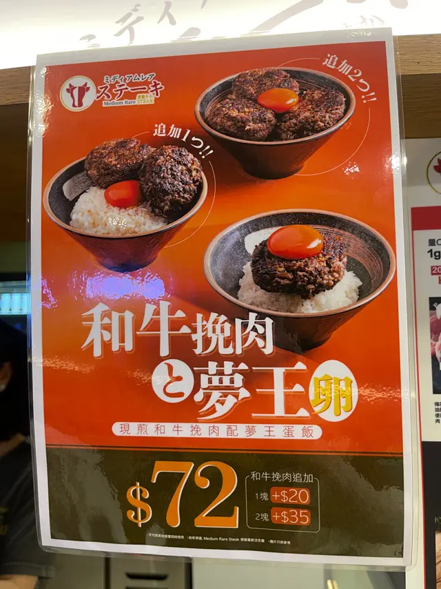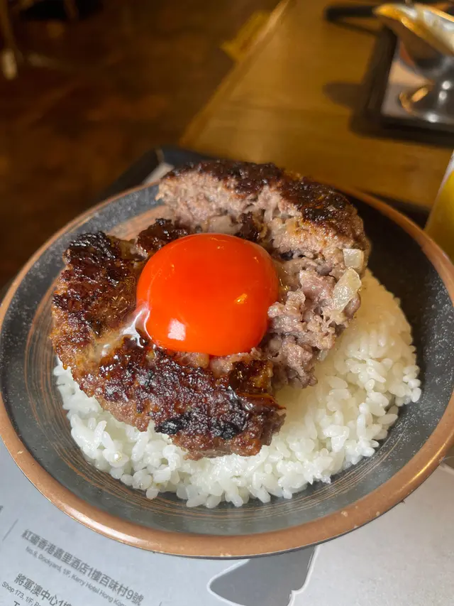 現煎和牛挽肉配夢王蛋飯。和牛挽肉鮮嫩,搭配上溏心的夢王蛋,蛋黃流出的瞬間,與米飯和肉類相互融合,口感十分滑順。