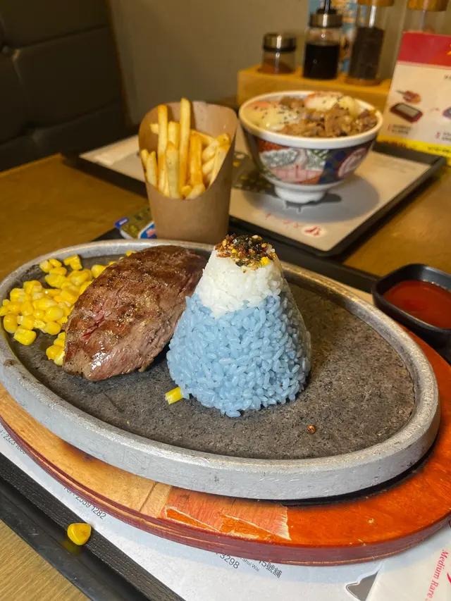 餐廳最近還推出了富士山石板牛扒餐,富士山飯非常吸睛,牛柳經過烹調,外焦內嫩,搭配上熱石板,粟米墊底,今日我哋保持最佳的食用溫度。每一口都充滿了牛肉的香氣當。
