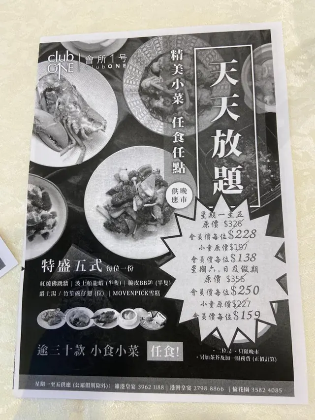 最近他們更推出一個晚市「天天放題」,成人價錢(星期一至五 HK$228, 星期六日假期 HK$250); 小童價錢(星期一至五HK$138, 星期六日假期 HK$159)。