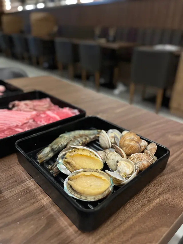 最特別係同枱可以揀唔同餐,因為得定量嘅拼盤有唔同。$598嘅套餐會多咗特選鮮蠔同三款安格斯牛肉。隻隻蠔都好大隻,煮耐啲都係咁飽滿。牛肉質素喺任食嚟講算高,塊塊都厚切。而安格斯牛確實比普通美國牛靚好多,脂肪分布平均,嫩滑但係冇咁肥膩。海鮮超正,連鮑魚都有。