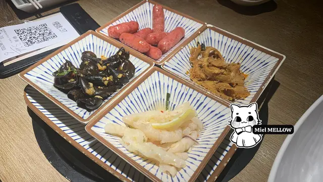 我們選了無限時的套餐。小食四碟先行,雲耳、鹵牛肚、無骨鳳爪和小腸,等湯滾時正好打底。