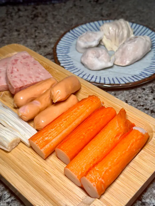香煎午餐肉|松葉蟹柳|脆皮芝士腸|金菇