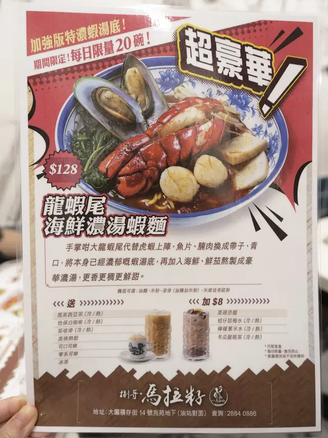 最新期間限定推出店內熱賣菜式「檳城福建蝦麵」的加強豪華版「龍蝦尾海鮮濃湯蝦麵」,每日限量20碗。