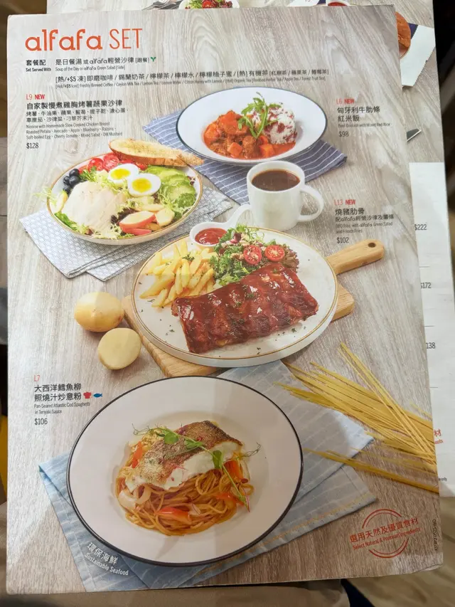 無需花心來用膳,隔壁咬包更省錢 LCYdine等級42025-10-07170 瀏覽 關注 港運城既有中高檔的食肆(例如大江户、皇后飯店),又有俯拾皆見的連鎖快餐食肆(例如大快活、Starbucks、Pacific Coffee),這間alfafa便夾在中間——價錢比較實惠是平民西餐,香港各地有分店但不算街知巷聞。晚餐主食連沙律餐飲大概要$100左右。跟餐沙律及餐飲跟餐沙律及餐飲 ★★★✰✰ 沙律蔬菜款式不少,除基本的車厘茄及紫椰菜,還有羽衣甘藍及藜麥。可惜醬汁太多,有點太酸。放在沙律碗邊的牛角包感覺放了很久,比較乾身,不算鬆脆。自家製慢煮雞胸青醬意粉$94自家製慢煮雞胸青醬意粉 ($94) ★★✰✰✰ 我本來不對草菇/蘑菇味感抗拒,但意粉的button mushroom青味很突出,感覺沒有用足夠的牛油先炒熟。其餘配料都很隨意的放在一起,味道很不coherant。雞胸略嫌太韌,而且整碟意粉沒有pesto sauce的羅勒或蒜香,味道很一般。 當日到訪,雖然遠遠不至滿座,但座位仍擺放的很擠迫,用膳環境有待改善。1421以上食評乃用戶個人意見 , 並不代表OpenRice之觀點。讚好分享無需花心來用膳,隔壁咬包更省錢 alfafa (港運城) https://s.openrice.com/QrbT07xLU00檢舉 張貼 評分2味道3環境4服務3衛生3抵食用餐途徑堂食人均消費$105 (晚餐)