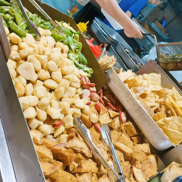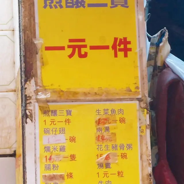 三寶有紅腸,青椒,茄子,豆腐,魚蛋,雲吞,雖然魚肉有D薄,但係$1你仲想點, 店家仲可番炸幫你整翻熱,推介食佢嘅魚蛋,成粒都係魚肉,感覺仲抵D