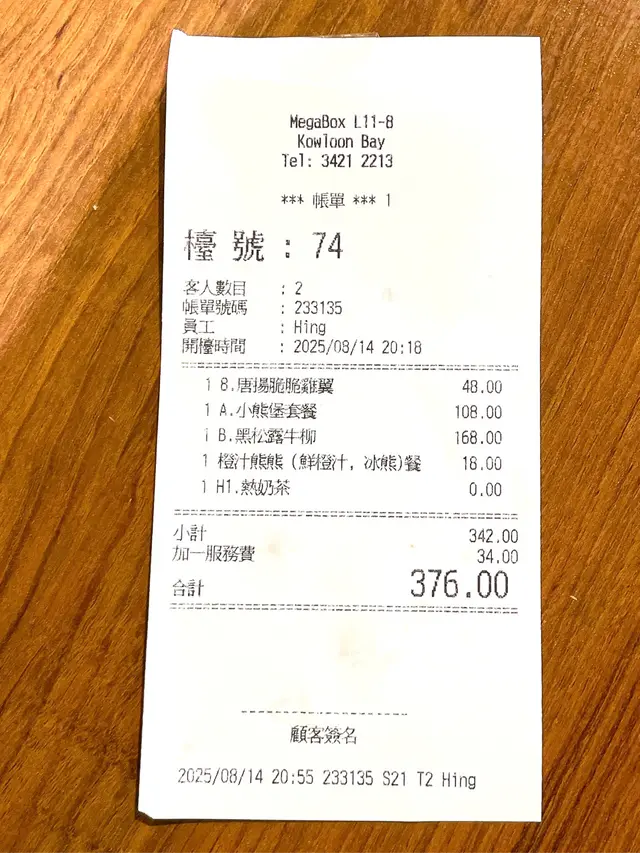 *此餐廳收取全單10%服務費。