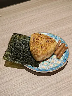 邊吃邊知道,蟹膏有濃郁的鹹香,而飯糰就是正常剛好的味道,所以記得混合來吃。