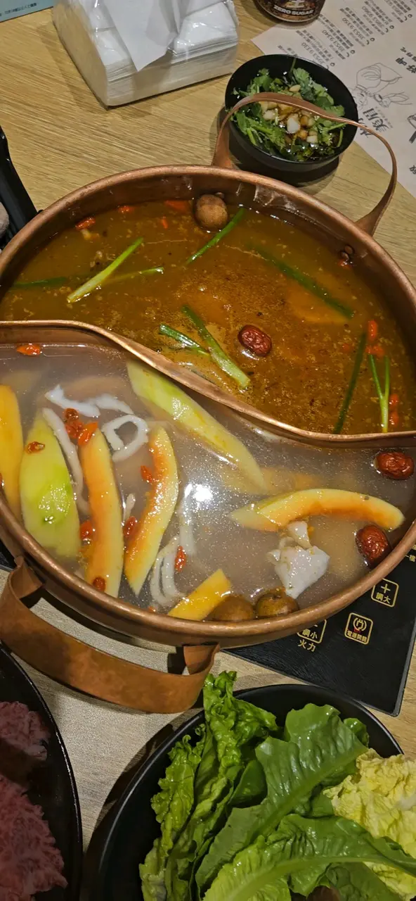 而今晚的焦點——木瓜椰皇嫩雞鍋,真係一鍋集結了多種滋味!木瓜的清甜果香和椰皇的奶香在鍋裡交融,既有養顏效果,又十分清爽!搭配上鮮嫩的雞肉和各種養生食材,簡直係女生們的最愛,食完後整個人都輕鬆無比!🥥🍗