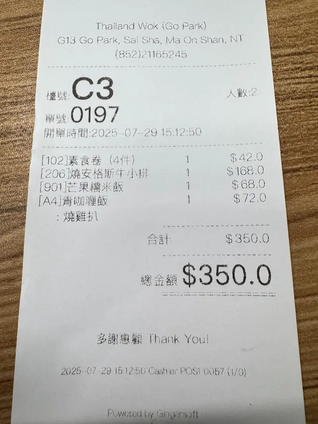 呢餐飯幾滿意,尤其係牛小排真係有驚喜!人均二百零蚊,坐得舒服,服務生手腳又快,唔會趕頭趕命。如果經過GO PARK想食啲泰式fusion,可以試下嘅~下次或者試埋佢個冬陰功,聞到隔籬枱好香啊🔥!