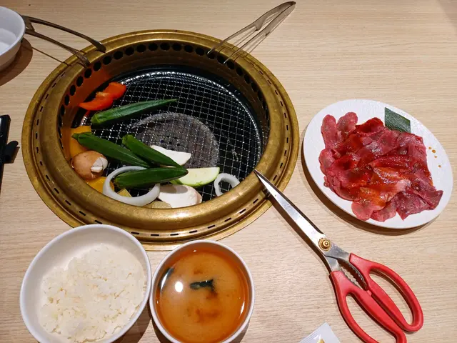 我點咗一人餐,99蚊牛舌定量(60分鐘)嗰個餐,保守估計有20塊牛舌,個餐有麵豉湯,飯&泡菜, 再加出面自助任食bar: 日式咖哩飯, 一啲生果 例如西瓜哈密瓜, 甜品( 日式大福 蛋糕仔),汽水,雪糕(有軟雪糕 &維記迷你雪糕糯米糍),炸物等,同埋沙律菜 , 另外可以自助攞啲蔬菜嚟燒 (有秋葵、冬菇、紅椒、青椒、黃椒等等)。
