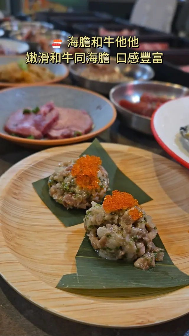 和牛嫩滑,海膽入口即溶,兩者結合口感層次豐富,食起來超方便,一口一件,真係無得輸!