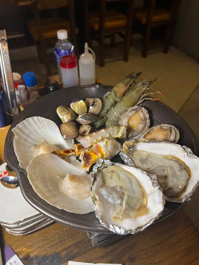 有齊扇貝、蝦、鮑魚、生蠔、蟹腳、蜆~