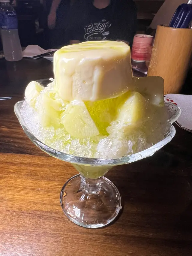 青蘋果味🍏~面頭有大大粒爽口青蘋果肉,頂層係冰涼雪糕,食落有驚喜,好似有啲芝士乳酪粒咁,口感好豐富!酸甜清爽,成個飯局完美作結,真心推介必叫!😋