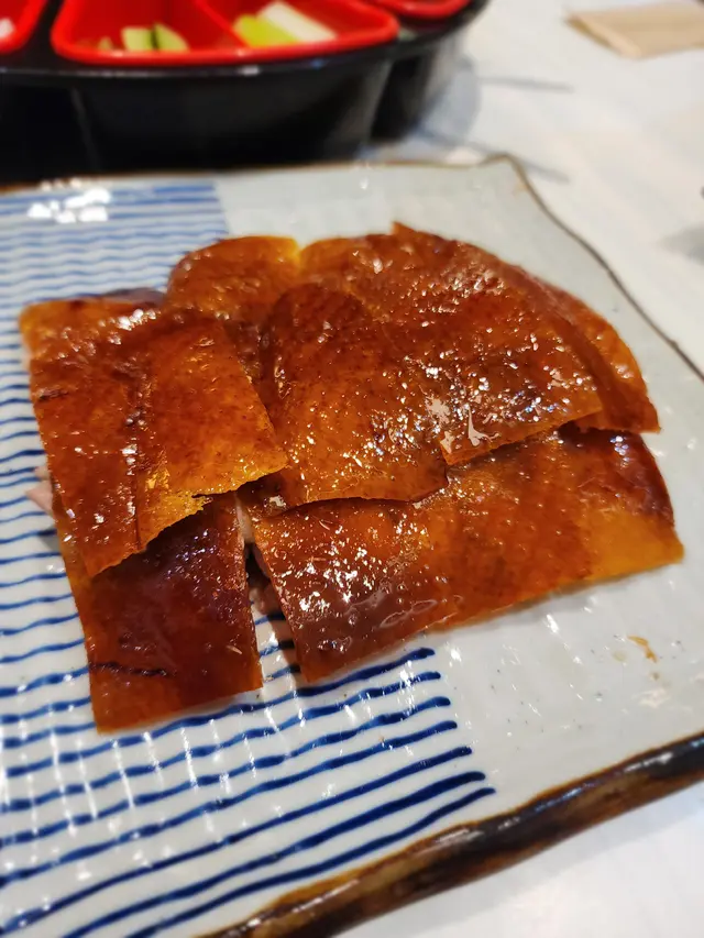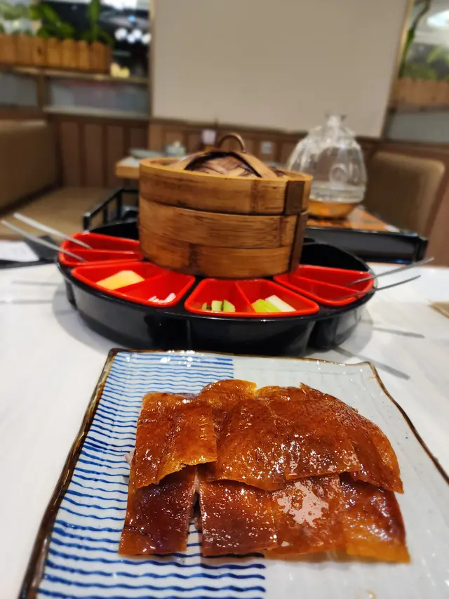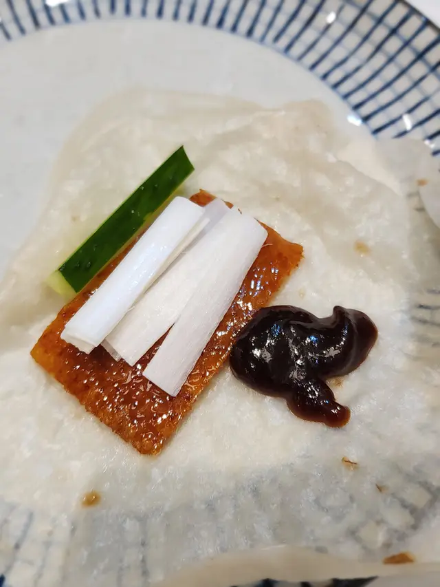 絕對是今晚的高光時刻!鴨皮烤得酥香脆口,鴨肉豐腴多汁。搭配陣容鼎盛的醬料與配菜:傳統甜麵醬、清新冰梅醬、香濃胡麻醬與獨特桂花糖醬,加上青瓜絲、京蔥絲等,讓捲餅的每一口都充滿變化和驚喜!