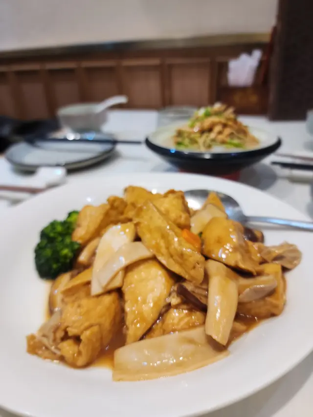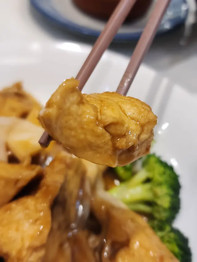 豆腐外微焦內軟嫩,吸飽了紅燒醬汁的精華。野菌的獨特香氣更提升了整體風味,鹹香下飯😍
