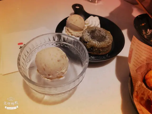 作為甜點控,這道「心太軟」讓我徹底淪陷!外層是微脆的巧克力蛋糕殼,切開後熱騰騰的熔岩巧克力漿緩緩流出,濃郁可可香瞬間瀰漫。搭配一旁的香草冰淇淋,冷熱交融的滋味令人欲罷不能。甜度控制得宜,即使不嗜甜的人也能輕鬆完食。據說這是店內人氣最高的甜點,果然名不虛傳。