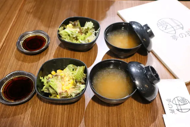 奉送沙律及面豉湯,沙律都係簡單以羅馬生菜及粟米加胡麻沙律醬。