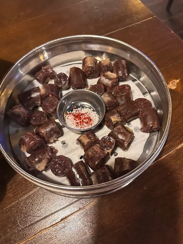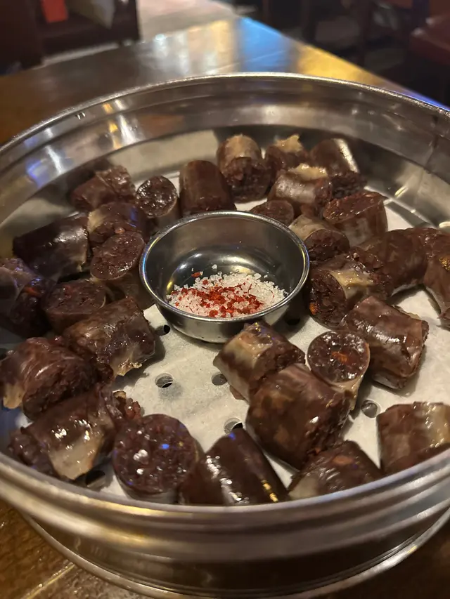韓劇常見的街頭小吃這裡也能嘗到!米腸外衣煙韌有嚼勁,內裏糯米軟綿,蘸上秘製鹽粒更提鮮。