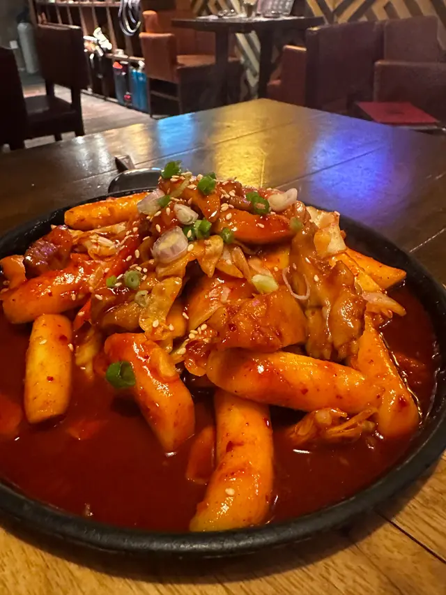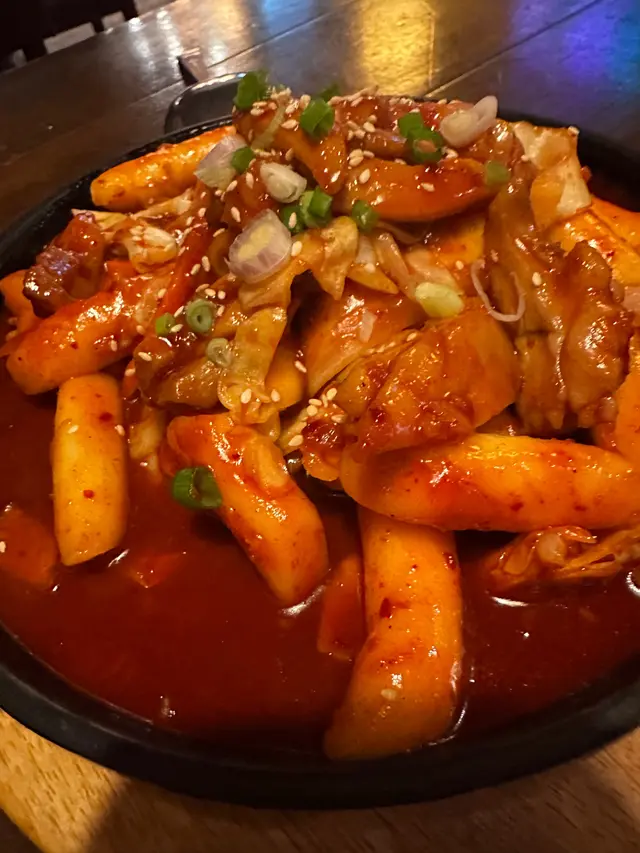 雞肉大件嫩滑,完全吸收韓式辣醬的精髓;年糕口感Q彈掛汁,辣中帶甜,大推!