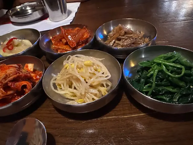 走進諾士佛臺的「狎鷗亭居酒屋」,瞬間被濃厚的韓國氛圍包圍——大幅韓式壁畫、播放着K-Pop MV的電視牆、暖色燈光搭配木質裝潢,彷彿穿越到首爾街頭的巷弄小館。由韓國人主理的餐廳,細節充滿地道感,連入座後奉上的六款自家製小前菜(泡菜、辣魚仔、芽菜等)都誠意十足,酸辣爽脆的泡菜尤其開胃!
