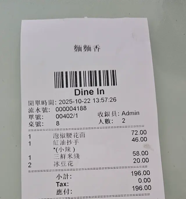 整碗鋪滿了嫩滑的腰花,入口柔嫩,爽脆無異味。使用獨家技術自然發酵的泡椒,不靠額外香料,酸、麻、辣層次分明,味道醇厚而獨特。再配上自家特製的鮮麵條,筋道有嚼勁,完美掛住湯汁!