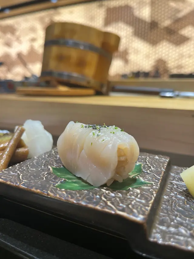 【Hokkaido Scallop Sushi - 8/10】 Fresh Hokkaido scallops, soft and sweet in every bite! 😋 Topped with yuzu zest for a refreshing, tangy kick that perfectly elevates the scallop’s natural sweetness. A true delight! 🌟