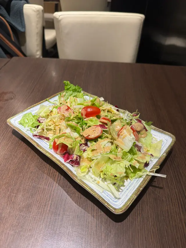 沙律菜(跟餐$20),份量多,內有生菜、紫甘藍、苦菊、車厘茄,配以焙煎芝麻醬食用,味道清爽。