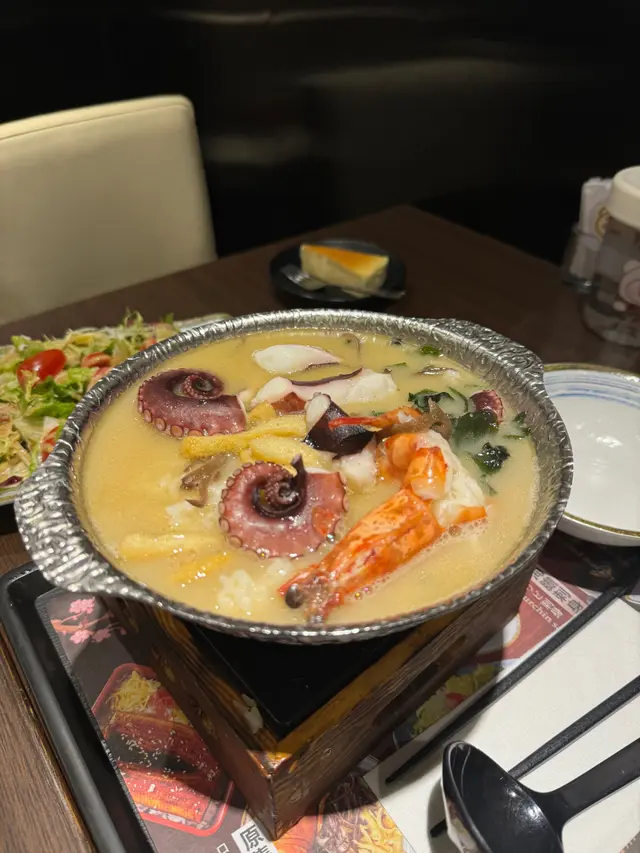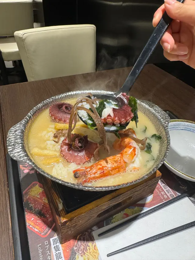 八爪魚鯛魚湯鳥冬轉鍋燒湯飯追加赤蝦(單點$111),赤蝦肉質爽口,味道鮮甜;八爪魚肉質厚身,口感彈牙,食落好新鮮;鯛魚湯鍋燒湯飯湯底飲落有鮮味,配料包括有豆皮、木耳、海帶。