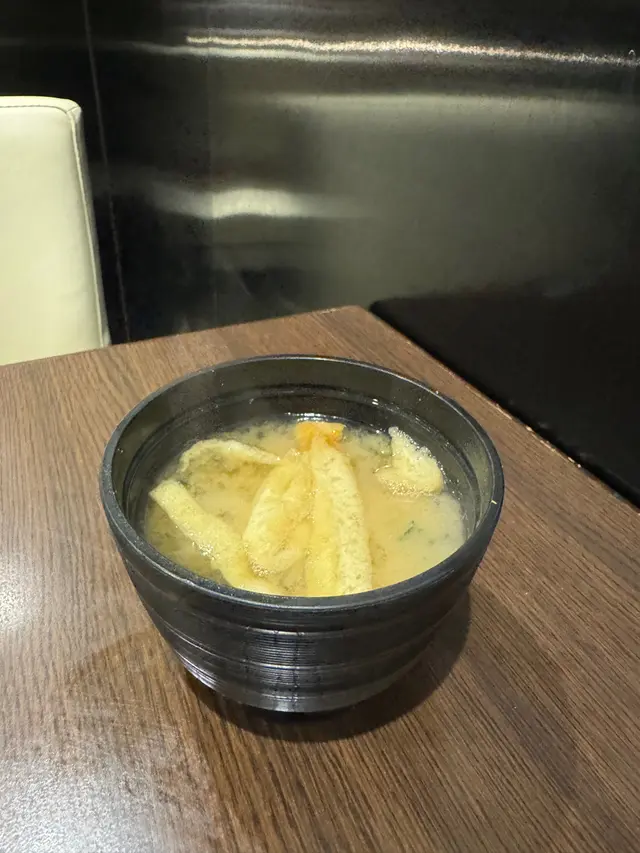 味噌湯(跟餐$0),內有豆皮、海帶,味道正宗。