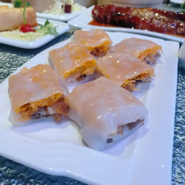 全場MVP!春卷皮脆到似玻璃紙,咬開爆出滿滿蝦膠同馬蹄粒,仲有啲唔知咩綠色蔬菜碎(可能係韭菜?),口感層次多到數唔晒,趁熱食真係會搶住夾第二件😋。