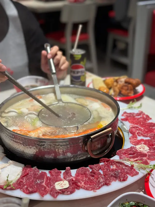 現切潮汕牛肉放題😆 KarenChanwc等級42025-11-08 關注 現切潮汕牛肉放題😆 餐廳主打現切手切潮汕牛肉吃到飽 牛肉每日新鮮抵港 供應各款稀有部位 仲有大量火鍋配料、小食、海鮮、雪糕等~====᪥ 海鮮潮汕牛肉放題 $288起==一入座就會送᪥ 海鮮拼盤拼盤包括鮑魚、桶蠔、海蝦、沙白᪥ 手切牛肉圈即刻試晒所有手切潮汕牛肉😝 包括五花趾、吊龍、匙柄、雪花同牛胸油!鍾意邊個就可以自己scan code任點任食!🤩任食質素嚟講算唔錯👍🏻 牛肉新鮮鮮美 啖啖肉啱哂食肉獸!==除咗招牌潮汕牛肉 火鍋方面仲有手工蝦滑、墨魚滑、手工餃子、脆肉鯇魚、青口、丸類仲有一啲特色小食例如生炸南乳雞翼、炸牛丸、咸蛋黃魚皮、雞軟骨、紫菜響鈴等等🤤5以上食評乃用戶個人意見 , 並不代表OpenRice之觀點。讚好分享現切潮汕牛肉放題😆 牛牛鮮 https://s.openrice.com/QrbT0yuzNm0檢舉 張貼 評分5味道5環境5服務5衛生5抵食用餐途徑堂食