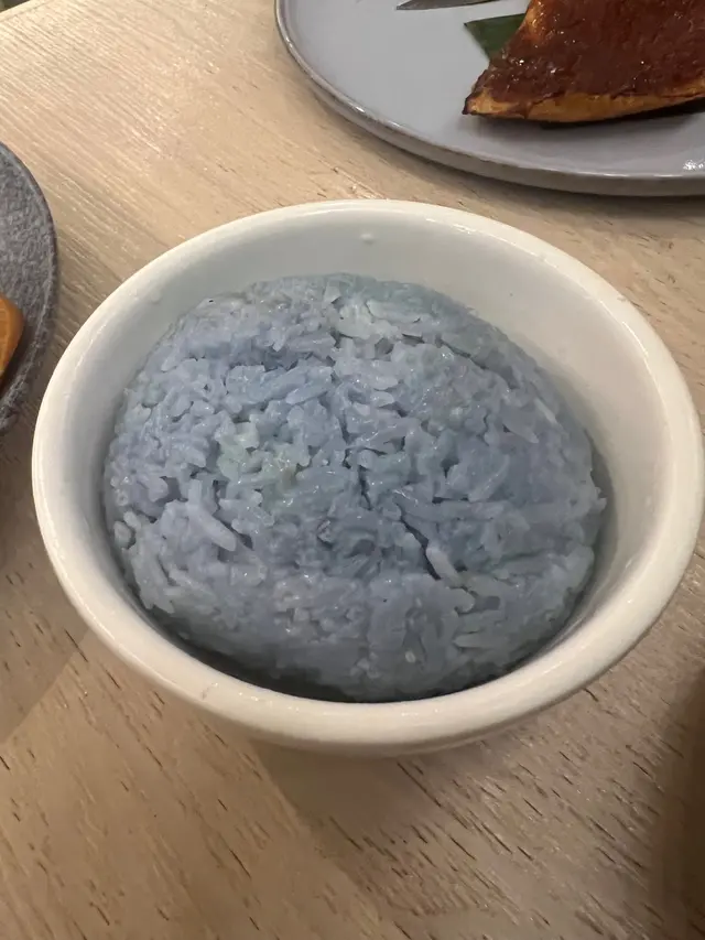 椰漿飯,蝶豆花的顏色令到椰漿飯變成只藍色,椰漿味道十足,頗為有新鮮感。