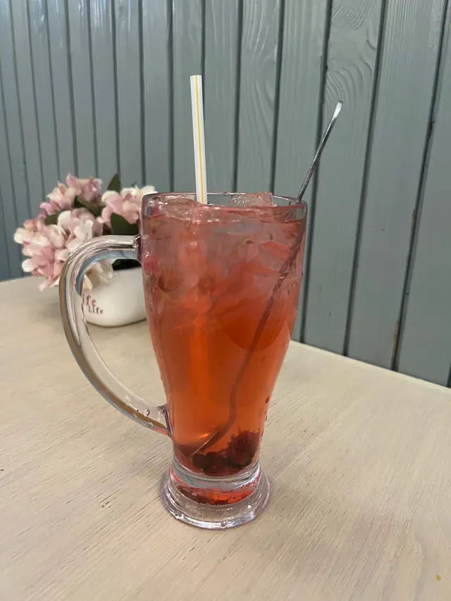 凍玫瑰花茶$36,有淡淡的玫瑰花香,帶點甜味。
