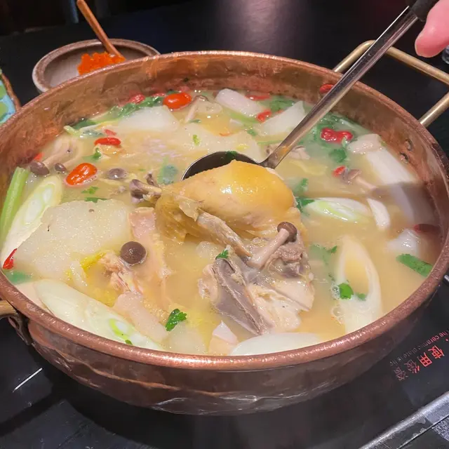 放入火鍋配料前先𢳂羹雞湯試味,湯底雞味濃郁,帶冬瓜清甜味。雞隻肉質鮮嫩,即使喺鍋內滾得耐,肉質仍然嫩滑。湯底內仲有養顏花膠、蟲草花、娃娃菜同菇等配料,滋補又豐盛!推介👍🏽
