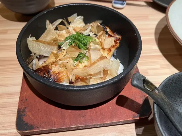 🐟燒至金黃的西京燒銀鱈魚,配上蔥花與木魚片,賣相吸引