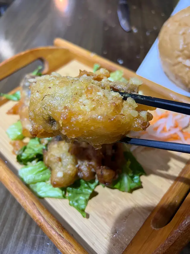 軟殼蟹炸得金黃酥脆,咬落外脆內嫩,滿口海鮮嘅鮮甜同牛油嘅濃香,仲帶點蒜香味,食落好似高級餐廳出品!