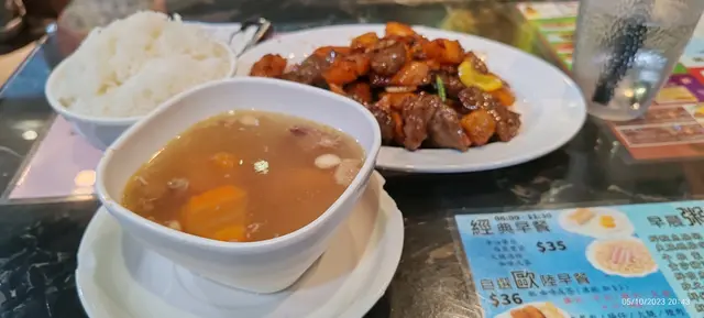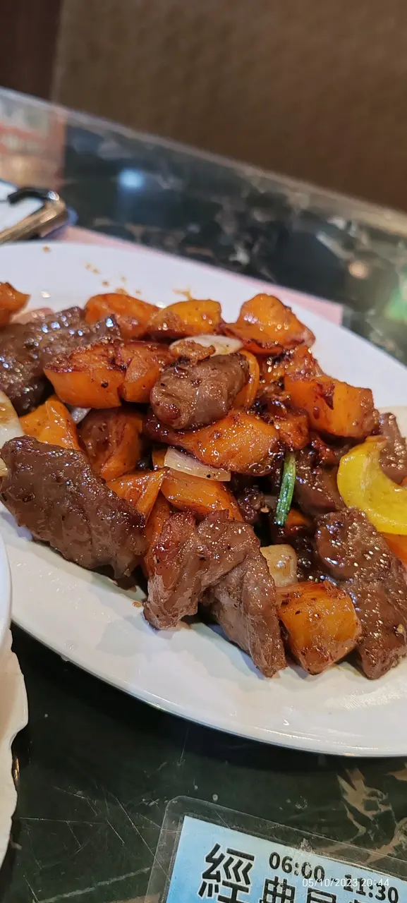 牛肉是番薯黑椒牛肉加上 用了蜜糖炒甜甜惹味