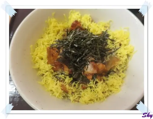 鰻魚的份量不少, 在飯面還放滿了蛋絲.